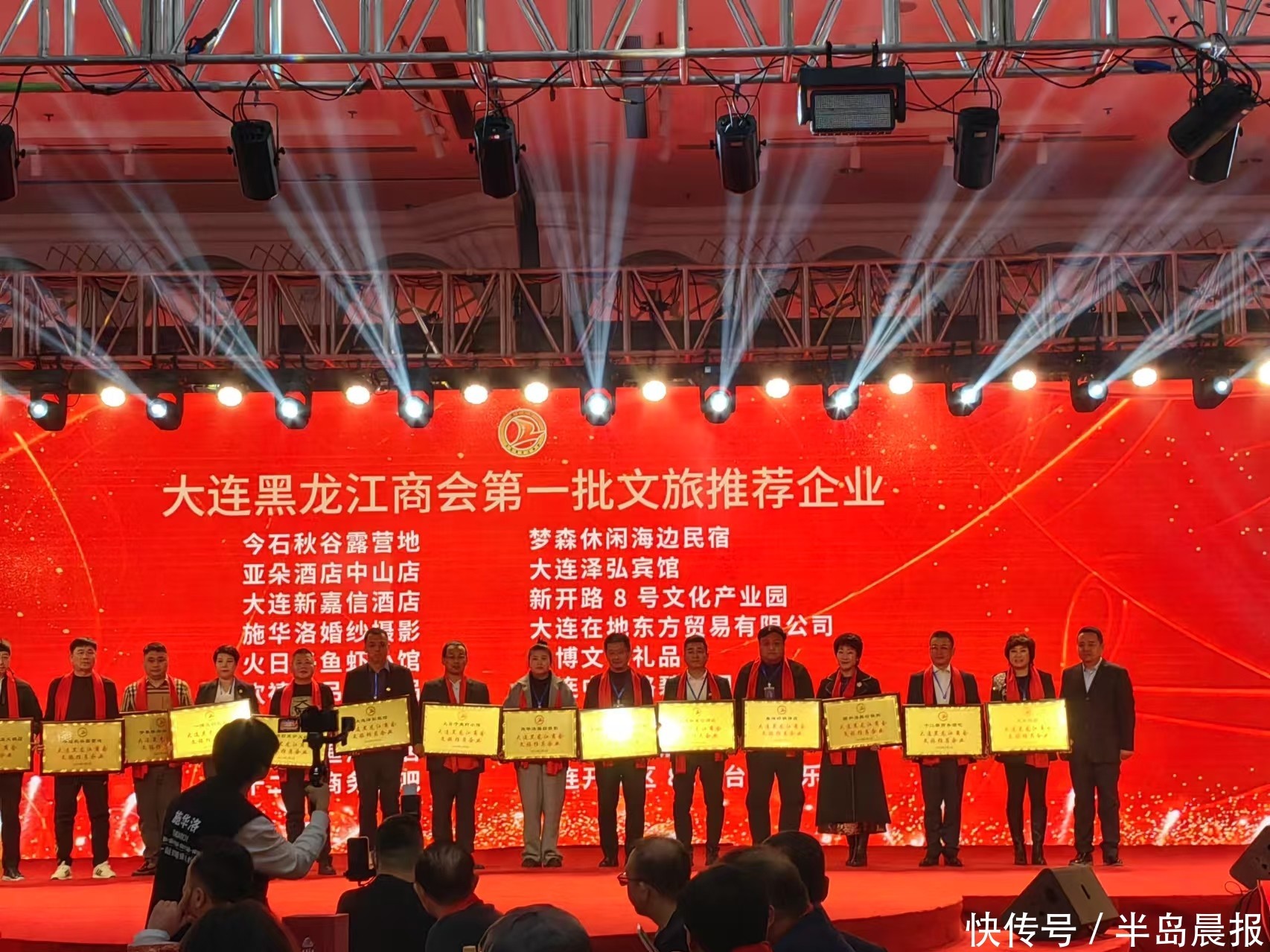 在表彰大会上,商会执行会长兼秘书长宋长有重温了商会16年来的发展历程,感谢全体商会会员和两地领导的大力支持,希望未来继续努力为推动地方经济发展和社会进步贡献更多的龙商力量。大会同时为新一届商会妇女联合会授牌,并为大连市文旅进行推介,播放了大连市文旅宣传片,邀请大连市文旅局为大连黑龙江商会第一批推荐的文旅企业授牌。